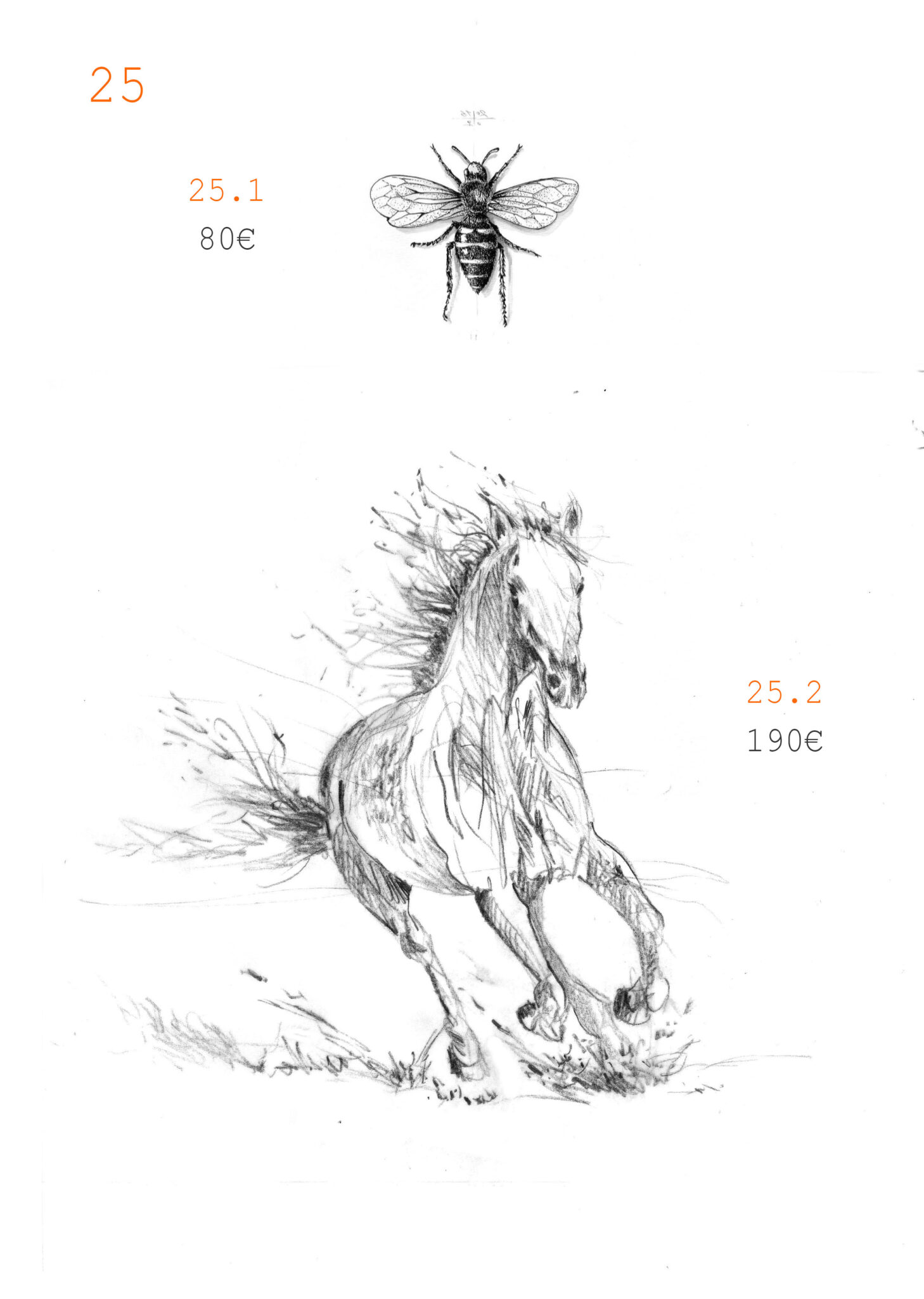 Ces dessins originaux, tirés des carnets de croquis de l’artiste, sont à adopter directement.