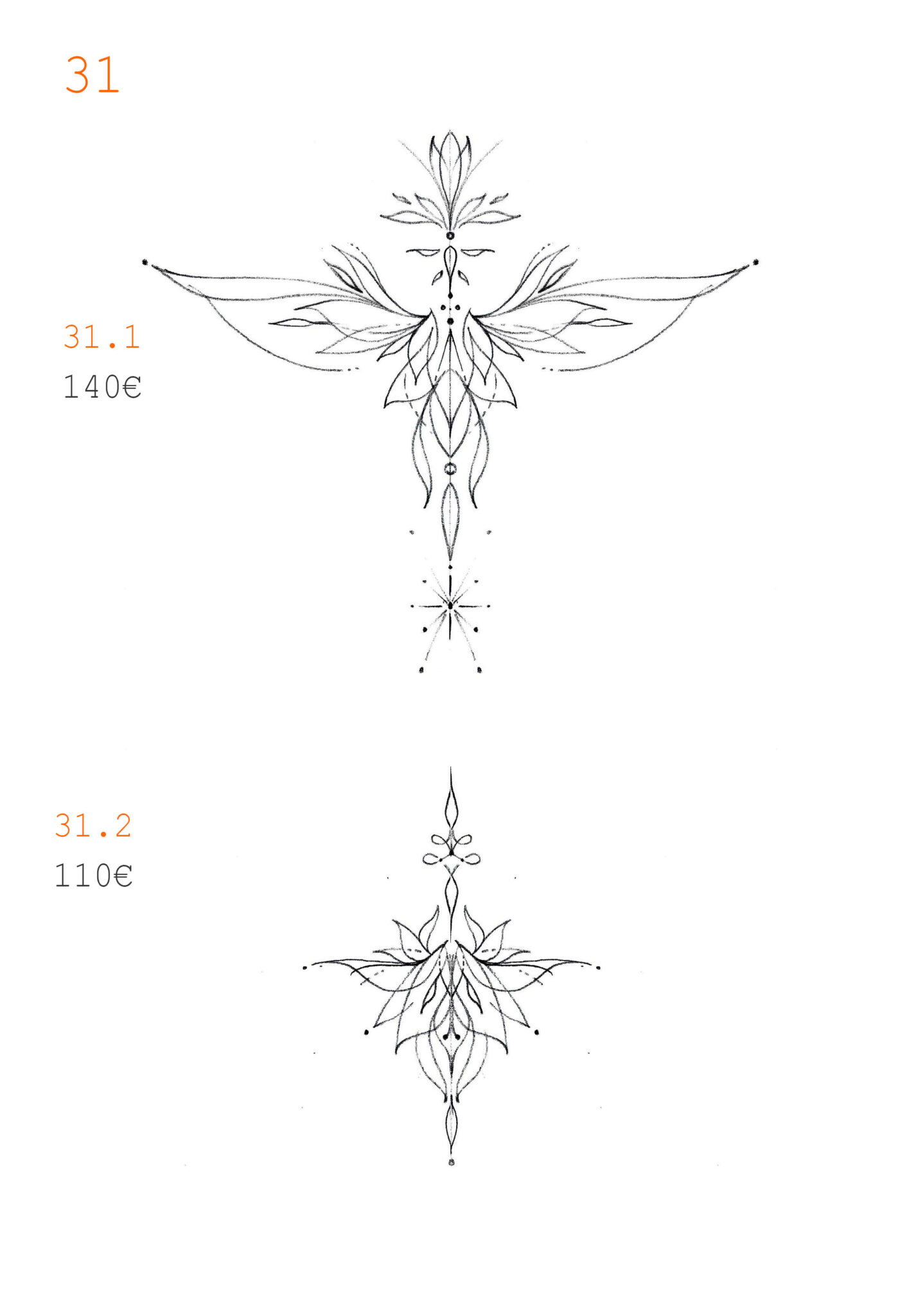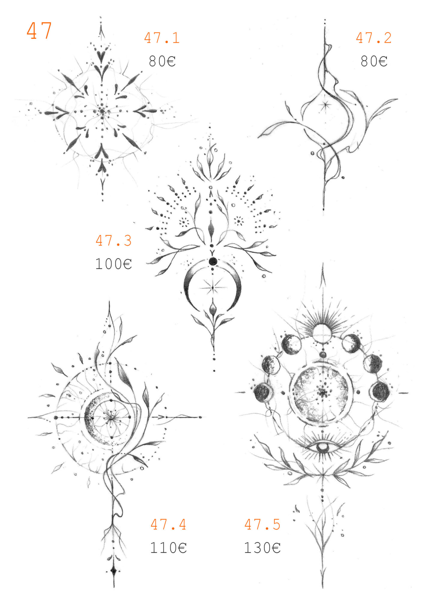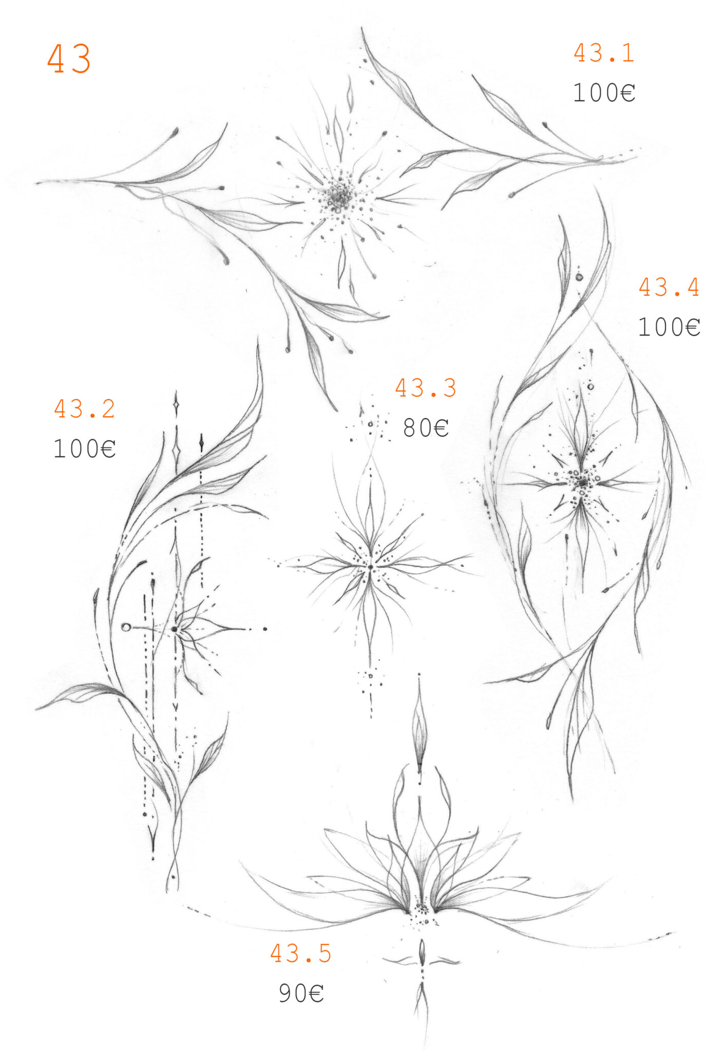 La tatoueuse se laisse le droit d’augmenter le tarif selon certains emplacements ou d’en proposer un autre plus adapté gratuitement.