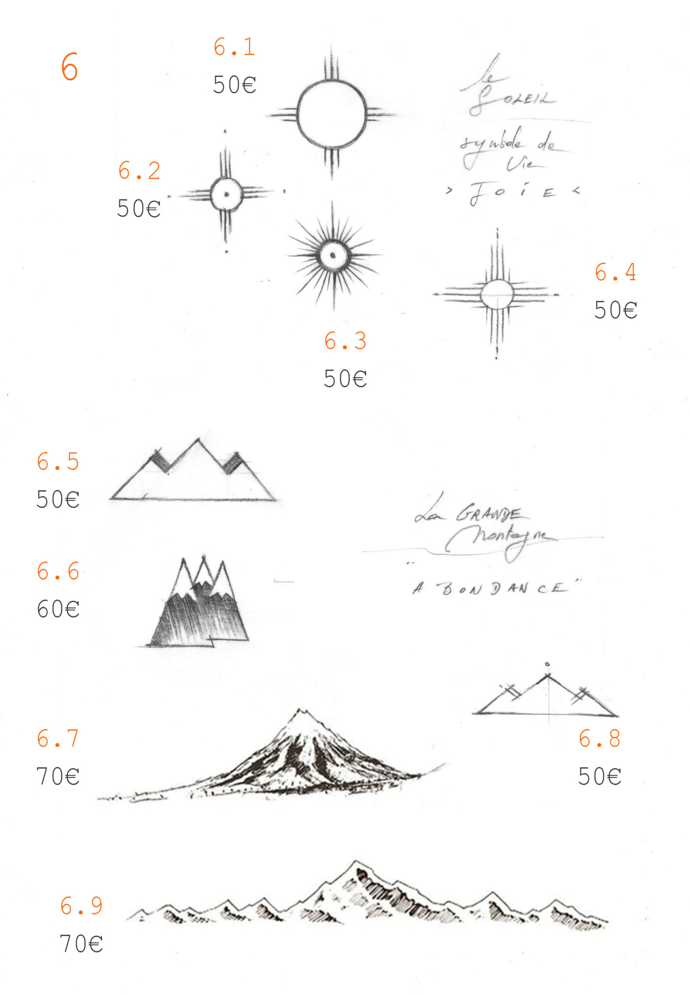 – Envoyer un E-mail ou un message privé sur Messenger avec le choix du dessin (code 13.4 par exemple), l’emplacement sur votre corps souhaité et vos disponibilités (7 jours / 7 même le dimanche + matin ou après-midi).